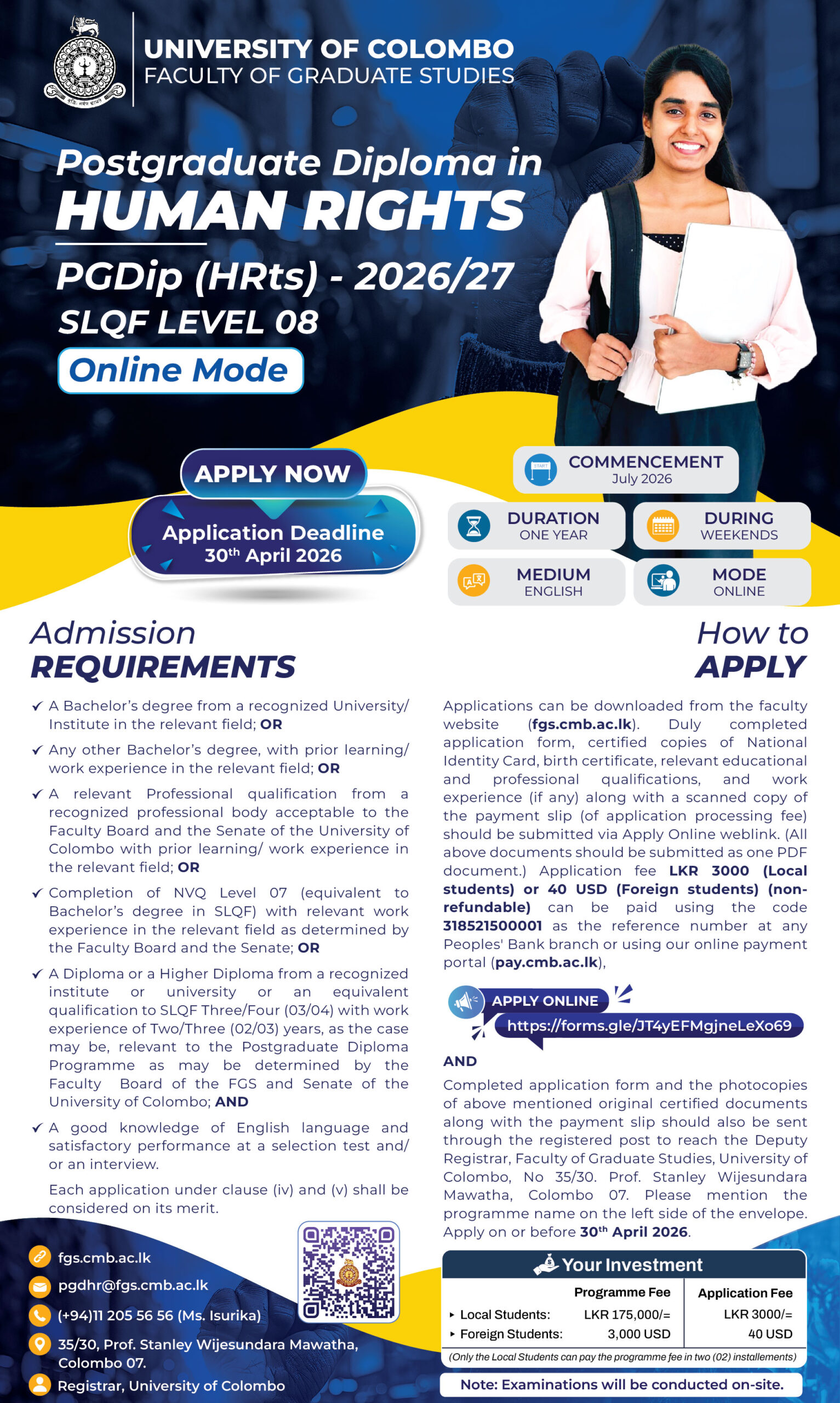 DURATION: One Year Address Faculty of Graduate Studies, 35/30, Prof. Stanley Wijesundara Mawatha, Colombo 07, Sri Lanka Categories Courses , FGS , Postgraduate Diploma Related Course Advance Certificate course in Ayurveda Caregiving Application Calling for Counselling & Psychology Course Programs – IHRA